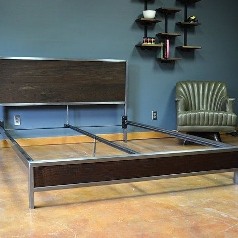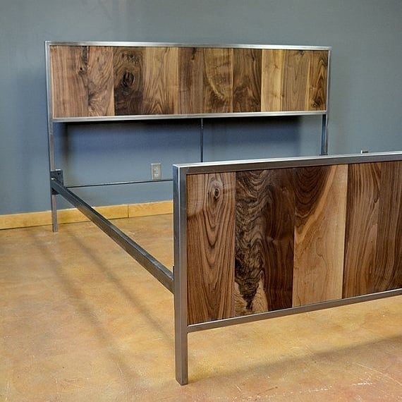 - Кровати из нержавеющей стали в комбинации с красным деревом и кожей.